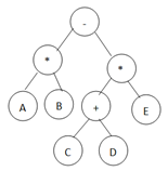 中缀表达式A×B-(C+D)×E的后缀表达式是( )