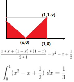 设第一个点坐标为 x ,则第二个点与它的期望距离为上图的公式一。