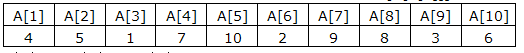 5. 数组A有10个下标变量,各个下标变量的赋值情形如下所示,则表达式A[A[A[5]]]的值是( )。