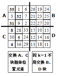 (3)交换B、D块从中间1列左数k-1列;