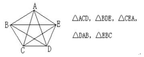 给出一个凸多边形,可以取得若干个内接三角形,同时约定内接三角形必 须有一条边(仅能有一条边)与凸多边形的边相重合,例如:下面的5边形中,可能有 的内接三角形有5种: