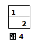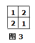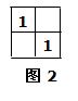 游戏开始可以规定某些格子已经有给定的数字。如图2所示,在2行2列的方格中,规定1行1列和2行2列的数字均为1,则得到唯一的如图3所示的方案。但如果规定1行1列数字为1,2行2列数字为2,则无法得到任何合法的方案(如图4所示)