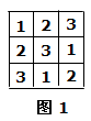在n行n列的方格中,每个格子填入一个1~n之间的数字,使得每行中没有重复数字,每列上也没有重复数字。如图1所示是一个3行3列的合法的安排方案。