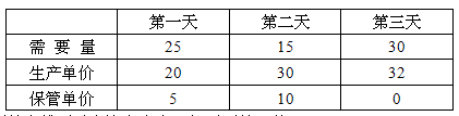 1. 问题描述:工厂在每天的生产中,需要一定数量的零件,同时也可以知道每天生产一个零件的生产单价。在N天的生产中,当天生产的零件可以满足当天的需要,若当天用不完,可以放到下一天去使用,但要收取每个零件的保管费,不同的天收取的费用也不相同。